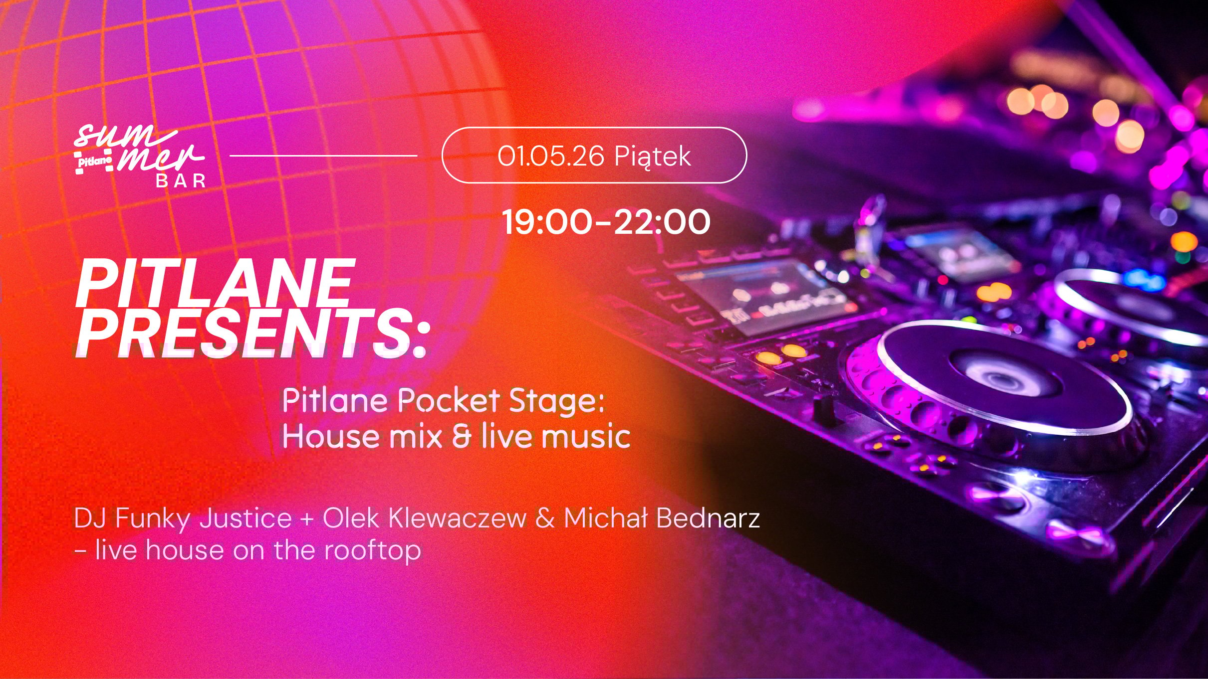 Za konsolą DJ Funky Justice zaprezentuje house’owe brzmienia, a towarzyszyć jej będą: