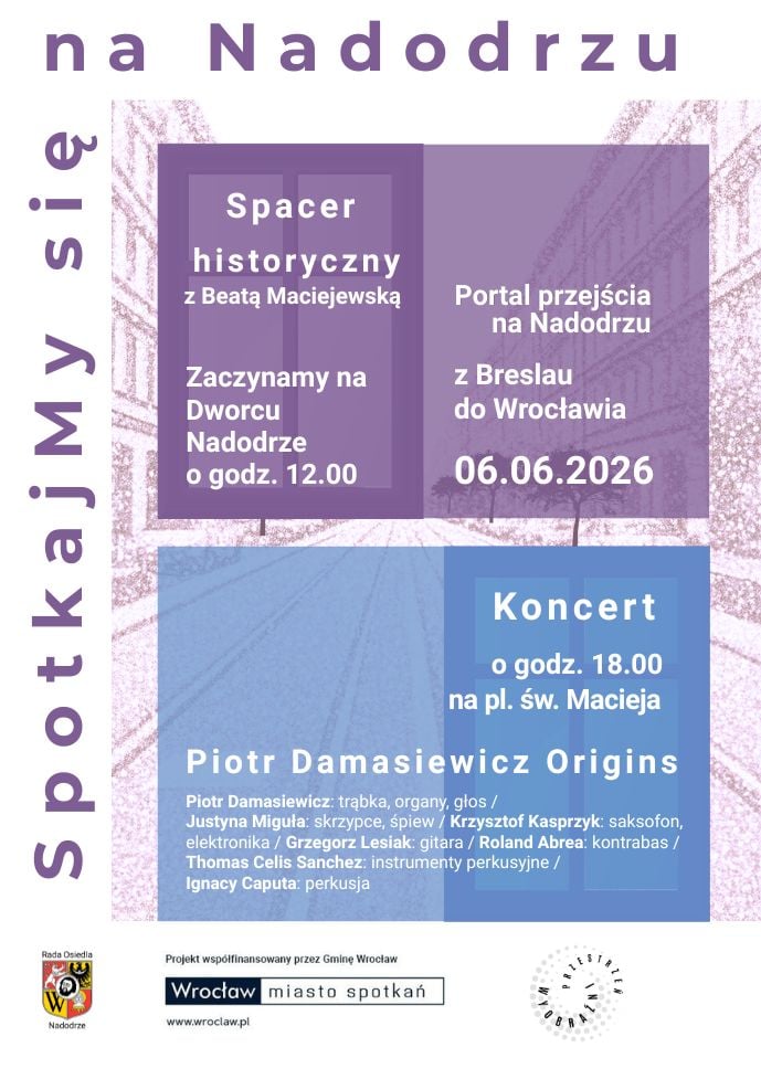 Tytuł spaceru „Z Breslau do Wrocławia. Portal przejścia na Nadodrzu” nie jest przypadkowy. Wspólnie przejdziemy trasą od Dworca Nadodrze do placu św. Macieja, podczas której Beata Maciejewska opowie o wyjątkowych miejscach i wprowadzi nas w historię Nadodrza oraz Wrocławia.