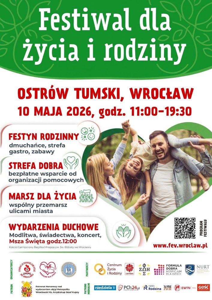 Z radością zapraszamy do udziału w II edycji Festiwalu dla Życia i Rodziny, który odbędzie się 10 maja 2026 roku na malowniczym Ostrowie Tumskim oraz w centrum Wrocławia.