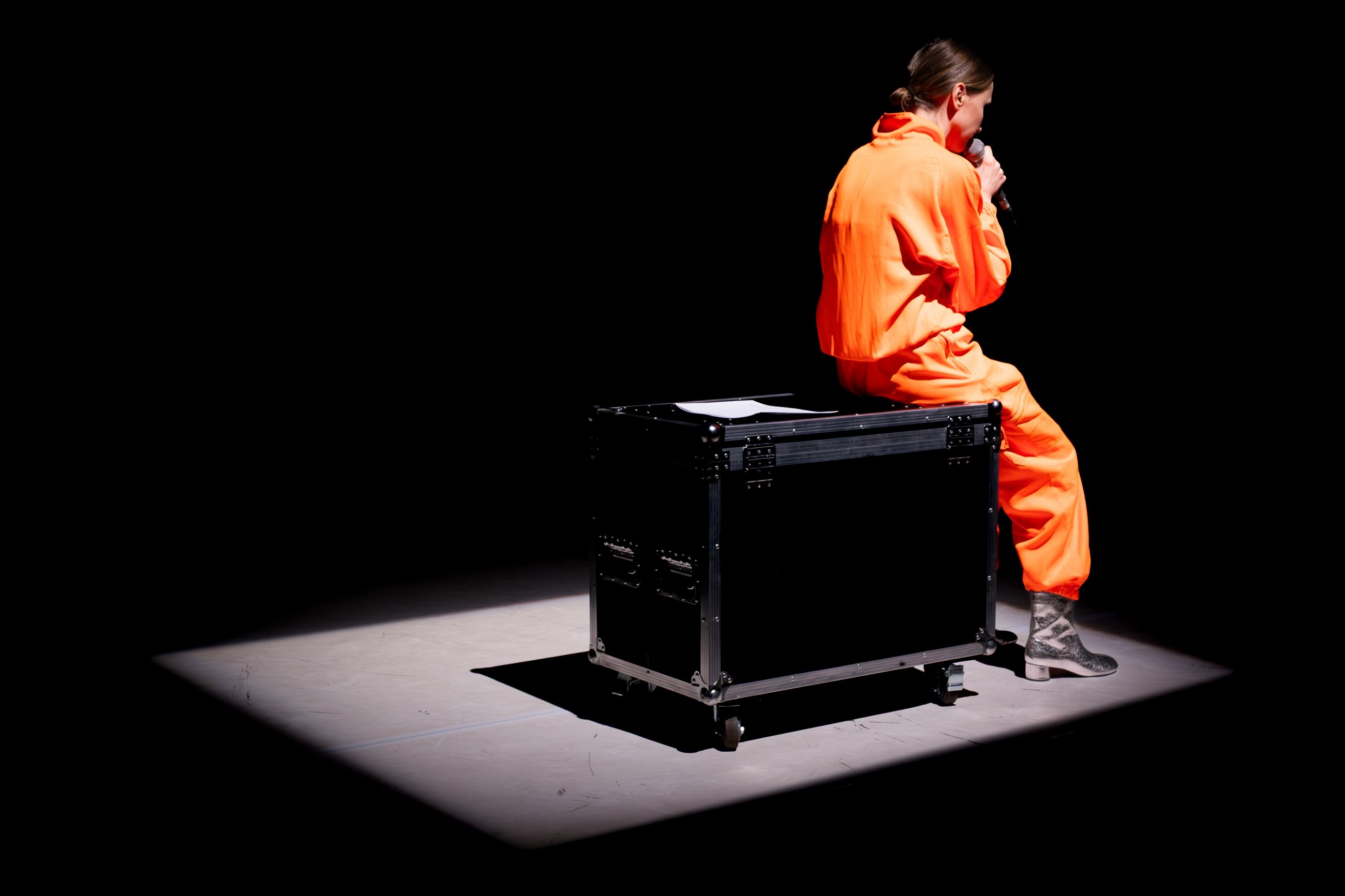 „Szum, matka, szklanka, system” to muzyczno-performatywny spektakl o macierzyństwie, bliskości oraz próbach odnalezienia wspólnego języka w świecie pełnym bodźców, napięć i nieustannych zmian. Powstał z doświadczeń mamy dziecka w spektrum oraz ze spotkań z rodzinami neuroróżnorodnymi.
